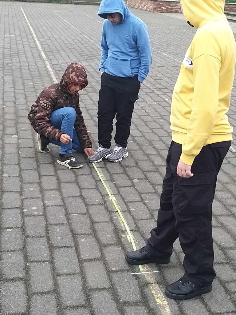 Activité extérieure avec les élèves de 1 et 2 diff pour approfondir la notion de surface.