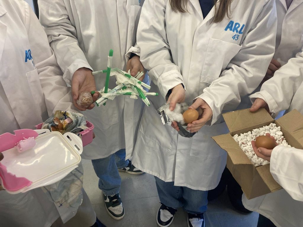 Dans le cadre du cours d’activités scientifiques chez Madame Alaime, nos élèves de 2e secondaire ont relevé un défi original : concevoir une structure capable de protéger un œuf lâché du 2e étage… sans qu’il ne se casse à l’impact ! Parachutes, coussins d’air, structures farfelues ou amortisseurs maison : tout était permis… tant que ça tenait la route (ou plutôt la chute !).À travers cette expérience, ils ont mis en pratique des principes de physique comme la gravité, l’énergie cinétique, l’absorption des chocs ou encore la résistance de l’air. L’objectif ? Ralentir la chute, amortir l’impact et protéger le fragile contenu. Un beau mélange de sciences, d’ingéniosité, de travail d’équipe… et parfois, quelques omelettes ! Bravo à tous pour leur créativité et leur démarche expérimentale rigoureuse !