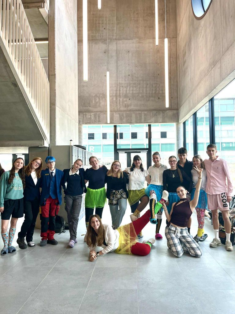 Certains rhétos ont souhaité marquer cette dernière semaine complète de cours en s’habillant dans différents thèmes :1er jour : tous en noir2e jour : des paillettes 3e jour : tous en fluo/couleur vive4e jour : tous en blanc5e jour : haut chic, bas choc !Ça sent la fin, ils se créent les derniers souvenirs dans ce nouveau bâtiment avant de nous quitter pour de nouvelles aventures !