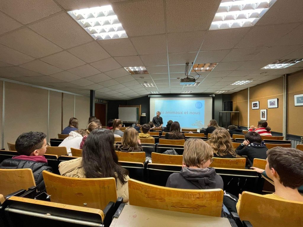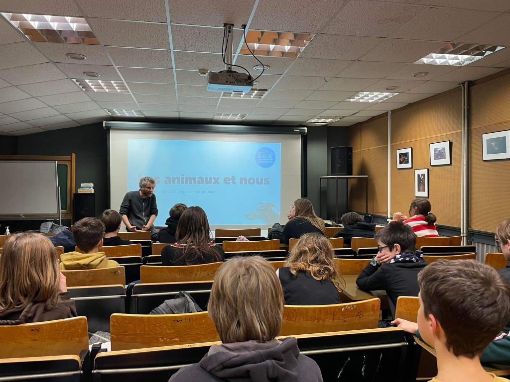 Animation Gaia pour nos élèves de 1re année option morale. Le sujet : les animaux et nous. Présentation de l’association, sensibilisation à la maltraitance animale, les élevages intensifs, les animaux sauvages dans les cirques, l’éthologie… Les élèves ont beaucoup aimé ![]()