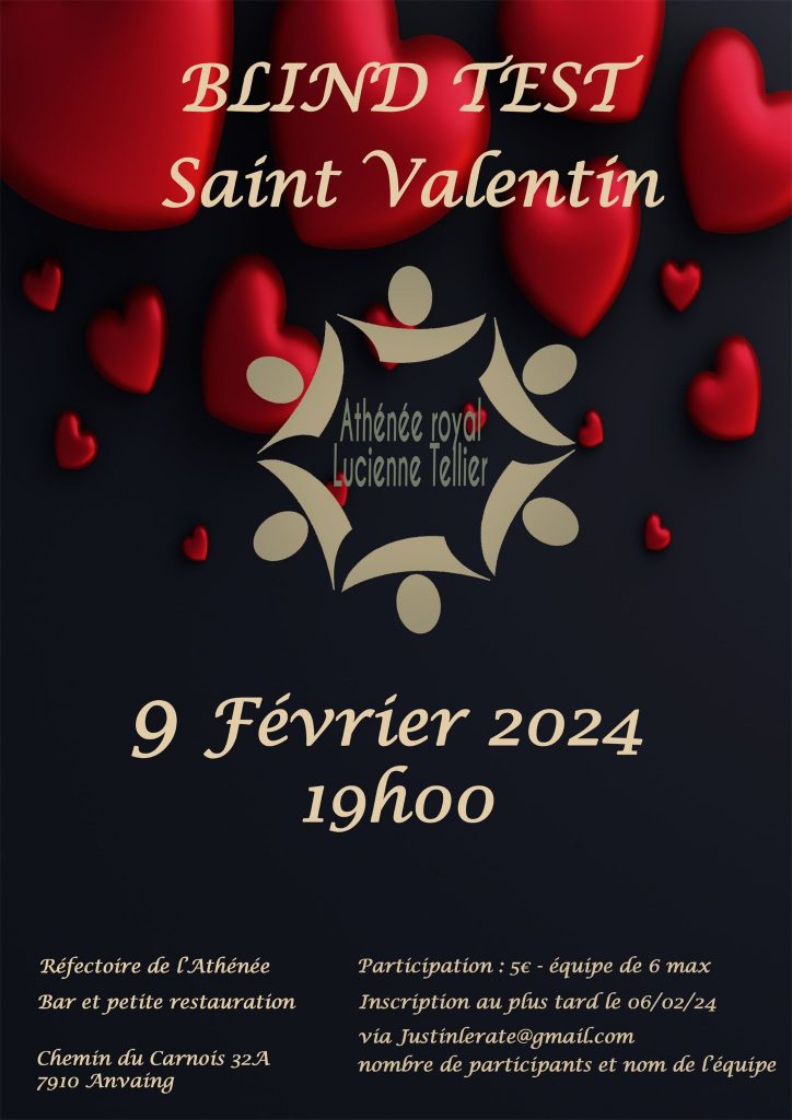 Invitation au Blind Test de la Saint-Valentin par admin | Jan 30, 2024 | Actualité Ce 9 février, venez soutenir nos rhétos pour l’organisation de leur voyage de fin d’études. Ambiance assurée !