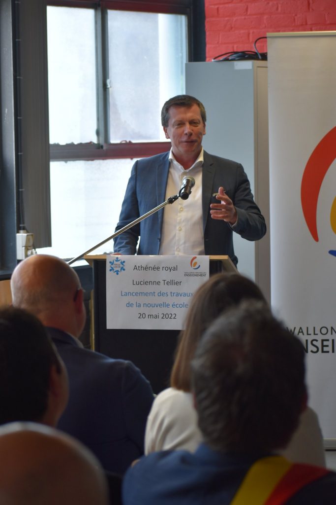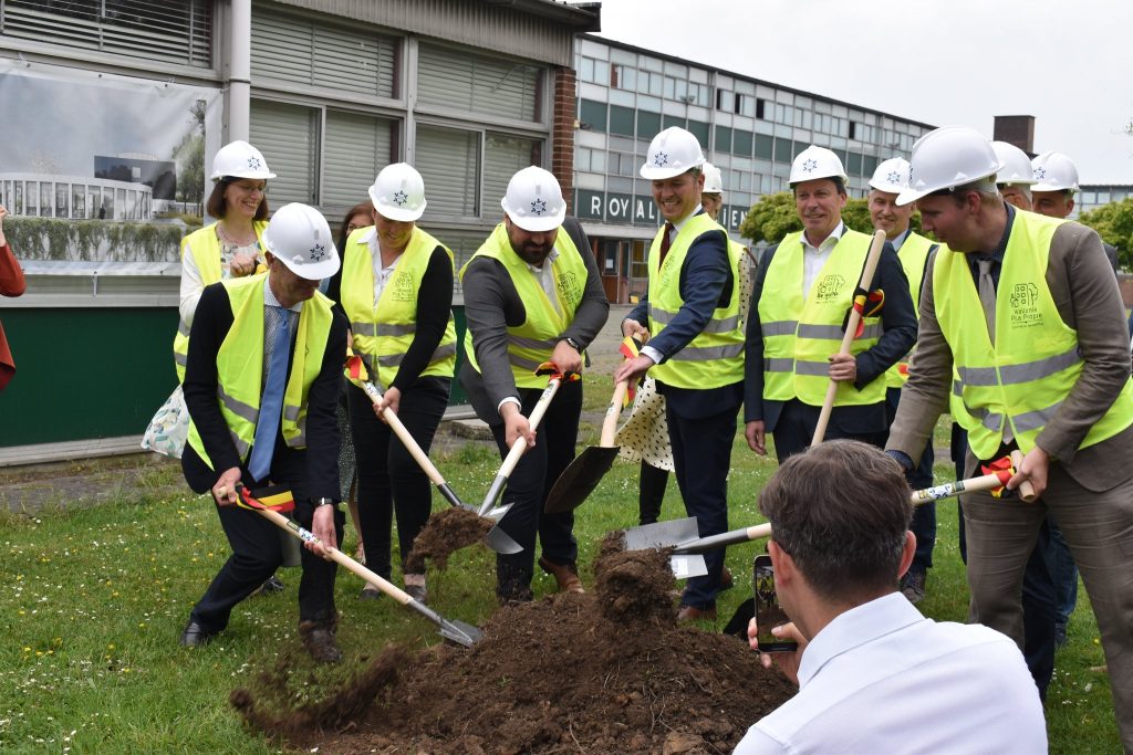 Ce 20 mai, présentation du projet de construction de notre nouvelle école en présence du Ministre Frédéric Daerden, du Député Jean-Luc Crucke, de Mme La Bourgmestre Desaintmartin Carine, de notre Administrateur général Julien Nicaise Bis, de représentants politiques, du Fonds des bâtiments, de parents d’élèves, anciens élèves et élèves actuels. La présentation a été suivie d’un coup de pelle symbolique. Ça y est, c’est parti pour de nouvelles aventures, les travaux débuteront réellement au mois d’août !