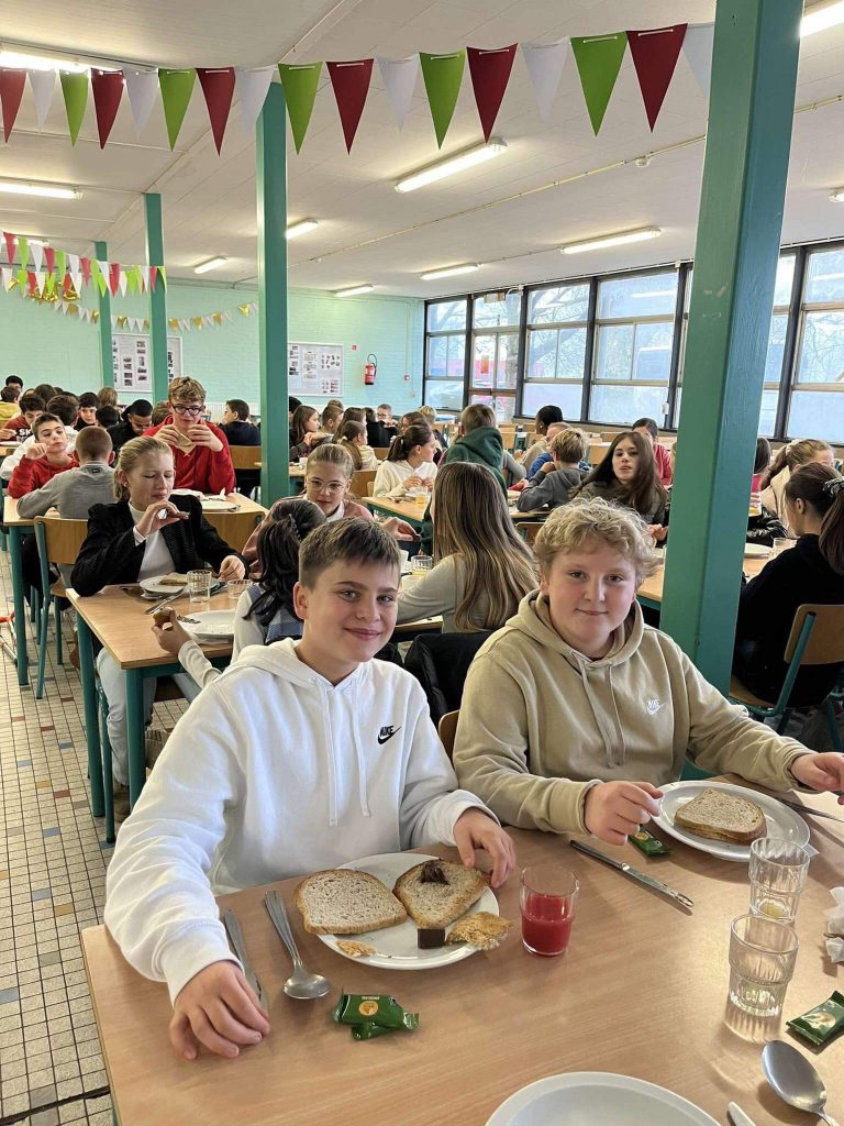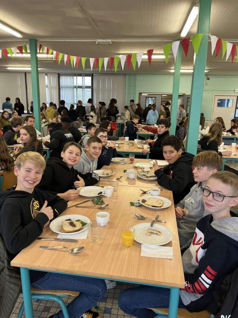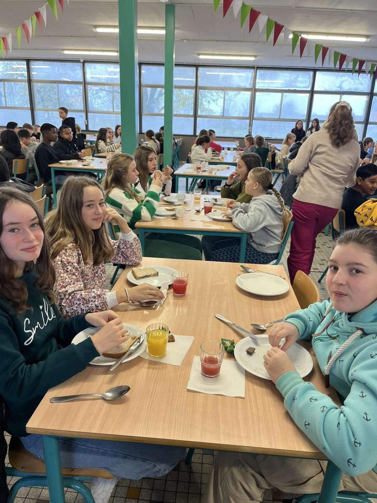 Ce mercredi 22 novembre, nos élèves de 1re année ont été sensibilisé au commerce équitable en bénéficiant d’un petit déjeuner. Ils ont eu l’occasion de découvrir les produits du commerce équitable : jus d’orange, jus de pomme et worldshake, du cacao, des confitures (fraise-rhubarbe, trois fruits, pomme cannelle et groseilles sureaux), des pâtes à tartiner (chocolat noir, chocolat noisette et spéculos) ainsi que du chocolat noir, au lait et des spéculos. Un grand merci aux élèves de 3-4P pour leur aide.