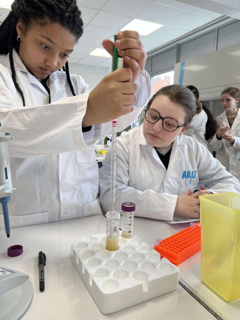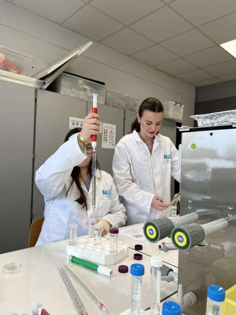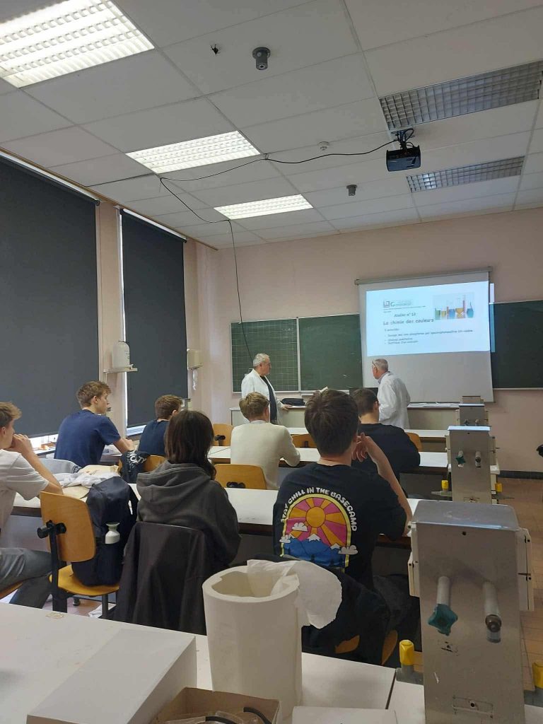 Ce vendredi 21 mars, nos élèves de 5è et 6è option sciences ont eu l’opportunité de participer au Printemps des Sciences. Ils ont découvert, dans un premier temps, les différentes options de bachelier proposées par la Haute Ecole Provinciale de Hainaut – Condorcet Ath – et ont pu approfondir leurs connaissances scientifiques à travers plusieurs ateliers interactifs. Repartis en petits groupes, ils ont expérimenté, manipulé et échangé avec les professeurs et étudiants de la Haute Ecole. Parmi ces ateliers : – La chimie des couleurs : dosage des phosphates par spectrophotométrie UV-visible, synthèse d’un colorant, identification d’ions en solution et pyrotechnie. – Initiation à la microbiologie : travail en conditions stériles, préparation de milieux de culture et observation au microscope de bactéries Gram + et Gram -. – Techniques immuno-enzymatiques : mise en évidence d’un allergène majeur, l’arachide, via un test ELISA appliqué à l’analyse alimentaire. – Les insectes et l’eau : observation d’insectes naturalisés et de larves inféodées au milieu aquatique au binoculaire, avec exercices de reconnaissance à l’aide de clés d’identification.
