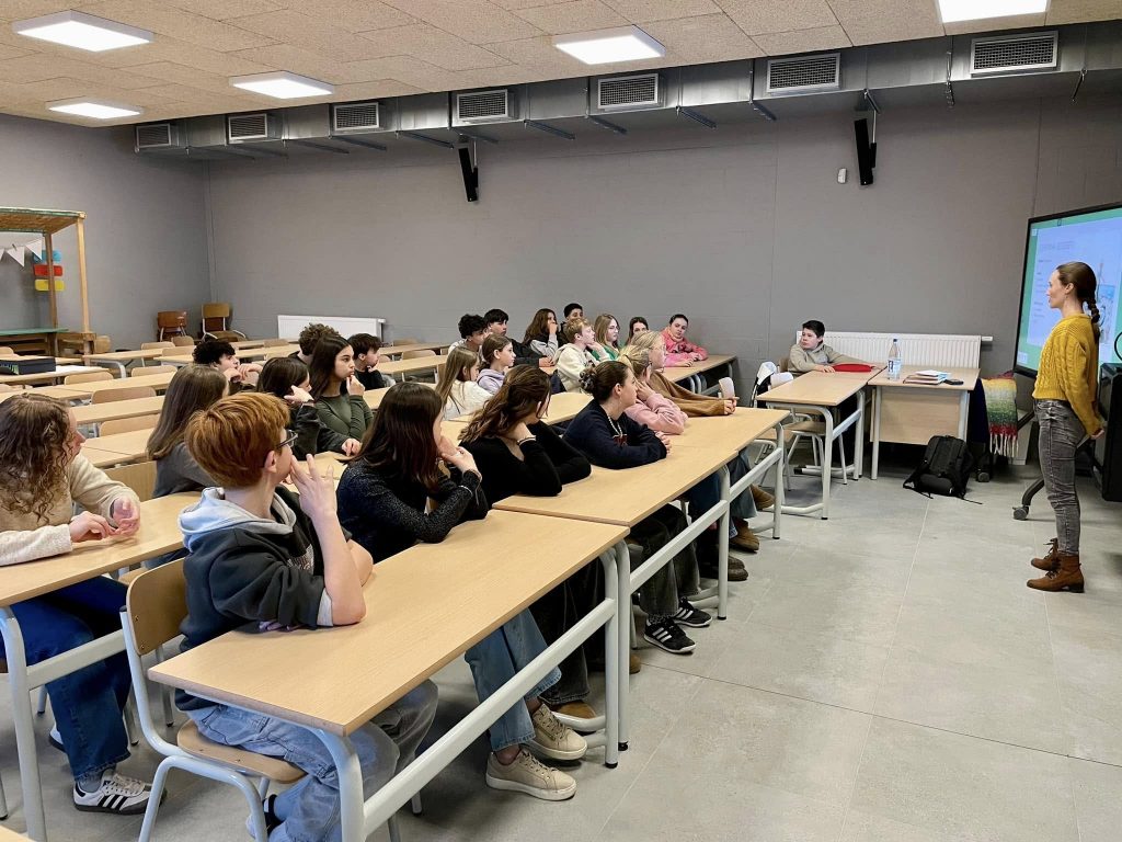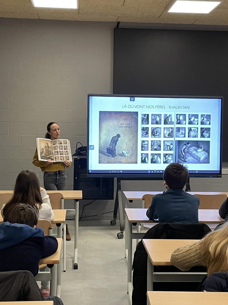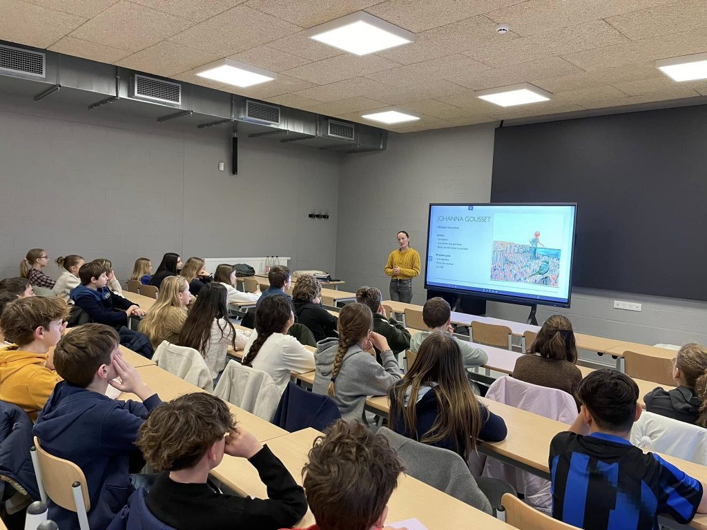 Cette semaine, les élèves de 1re année ont eu la chance de rencontrer Johanna Gousset, illustratrice de la région. Elle leur a expliqué son parcours tout en présentant certains de ses projets. Les élèves se sont montrés attentifs et ont découvert les multiples aspects de ce beau métier. Mise en pratique pour certains élèves de 1re également : comment aborder l’illustration de sa couverture à partir de son résumé apéritif ? Très chouette moment de partage et de découverte.