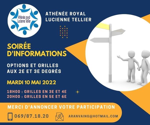Soirée d’informations sur les grilles horaires en 3e, 4e, 5e et 6e années. Présentation des options par les enseignants titulaires des cours ainsi que de toutes les combinaisons possibles.