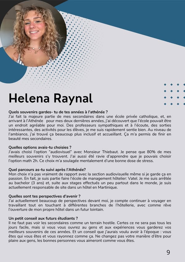Après le témoignage de Zélia, voici celui d’Helena Raynal qui explique son parcours au sein de notre établissement et donne quelques conseils à nos futurs élèves de 1re année.