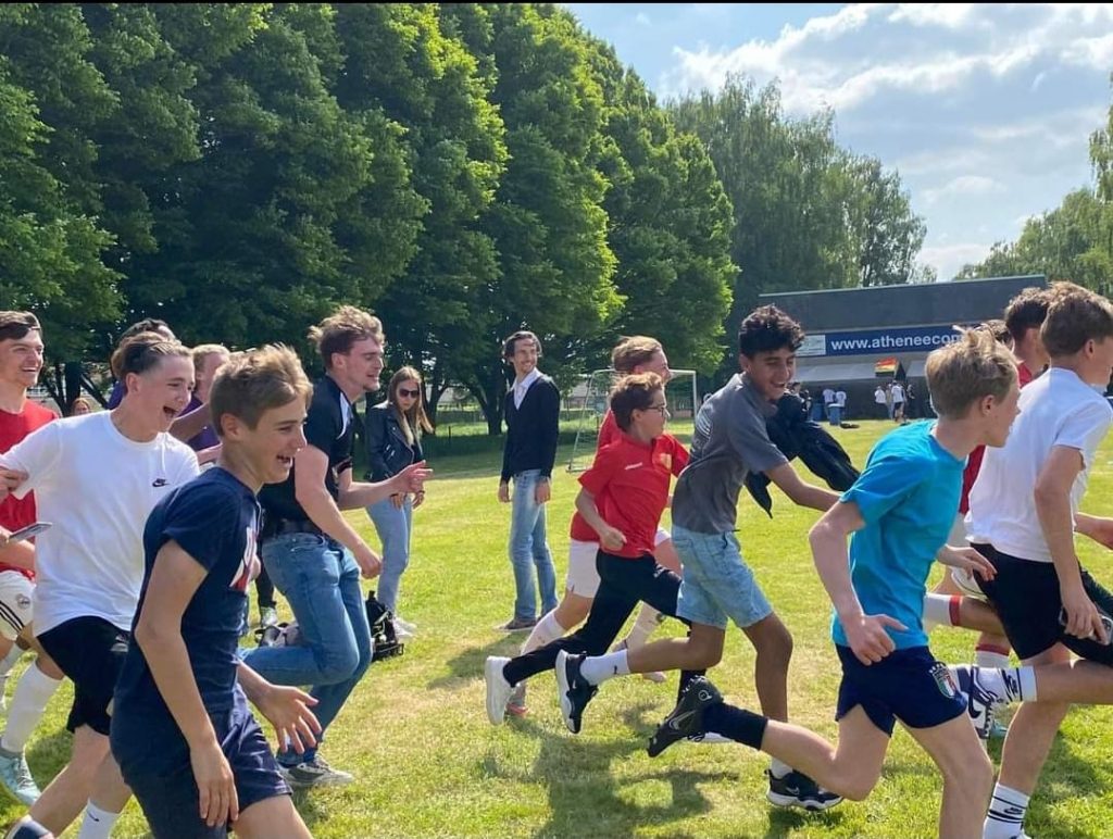 Ce jeudi 25 mai, 11 élèves de moins de 16 ans ans et 11 élèves de plus de 16 ans ont participé à un tournoi de foot interscolaire organisé par l’Athénée royal de Comines pour les écoles WBE de la Wallonie picarde. Sous un soleil radieux et une organisation exemplaire, nos élèves se sont bien défendus car, issus de différentes années, ils n’avaient jamais joué ensemble auparavant. Ils ont remporté le prix du fair-play. Bravo les jeunes !