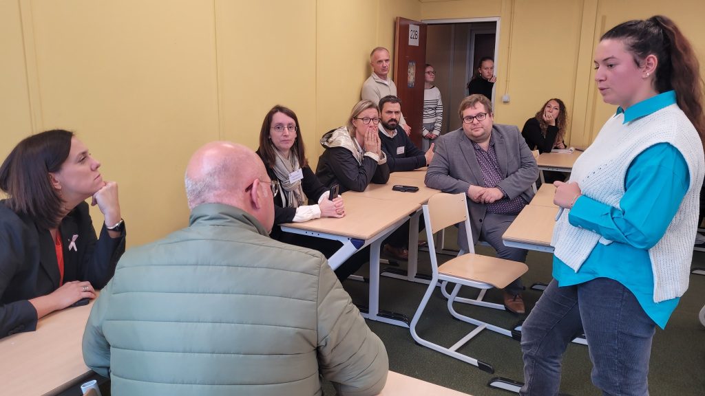 Visite à l’Athénée royal lucienne Tellier, Anvaing de la Ministre-Présidente de la Fédération Wallonie-Bruxelles/Officiel et Ministre des bâtiments scolaires Elisabeth Degryse en présence du Directeur général des Bâtiments et de la Logistique Olivier Doyen.👉 L’occasion de découvrir le projet multilingue français, néerlandais et anglais avec les élèves et de visiter le chantier du nouveau bâtiment, guidé par la Direction régionale du Hainaut, qui accueillera les élèves dans quelques mois. 👀