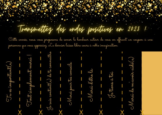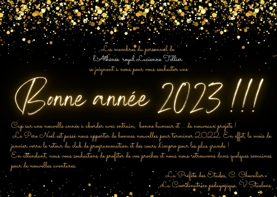 Vœux de fin d’année par admin | Déc 26, 2022 | Actualité Cette année, les élèves sont invités à répandre des messages positifs autour d’eux à l’occasion des vœux de fin d’année.